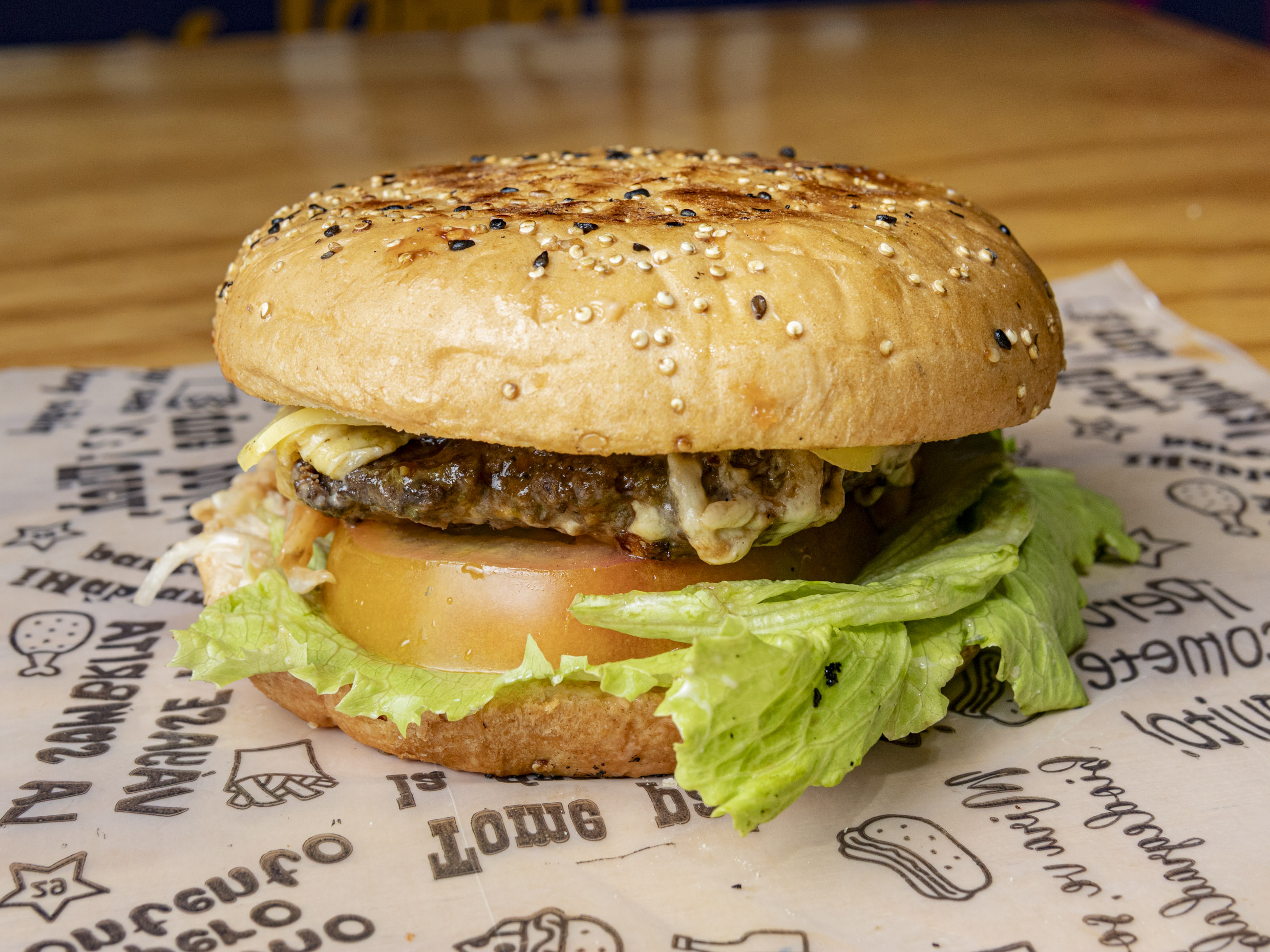 Lechuga, tomate vegetal, queso, salsas, carne de res.
