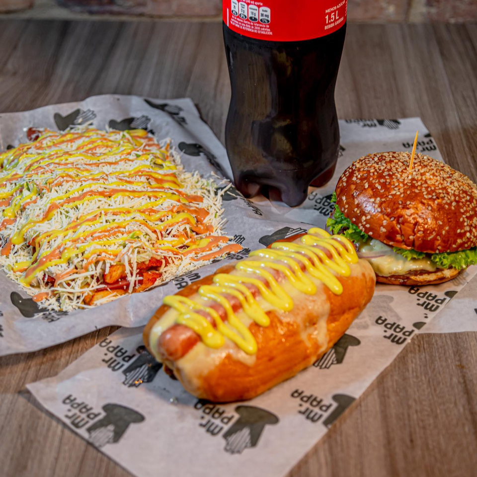 Perro Especial*1 + Salchipapa Sencilla*1 + Hamburguesa Sencilla*1 + Colombiana 1 L*1