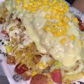papa francesa,salchichas,tocineta,maiz,queso,salsas y ripio
