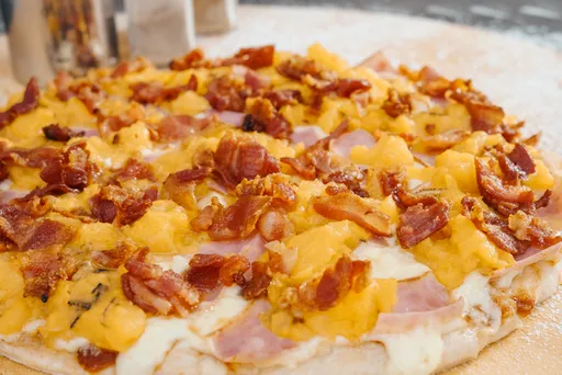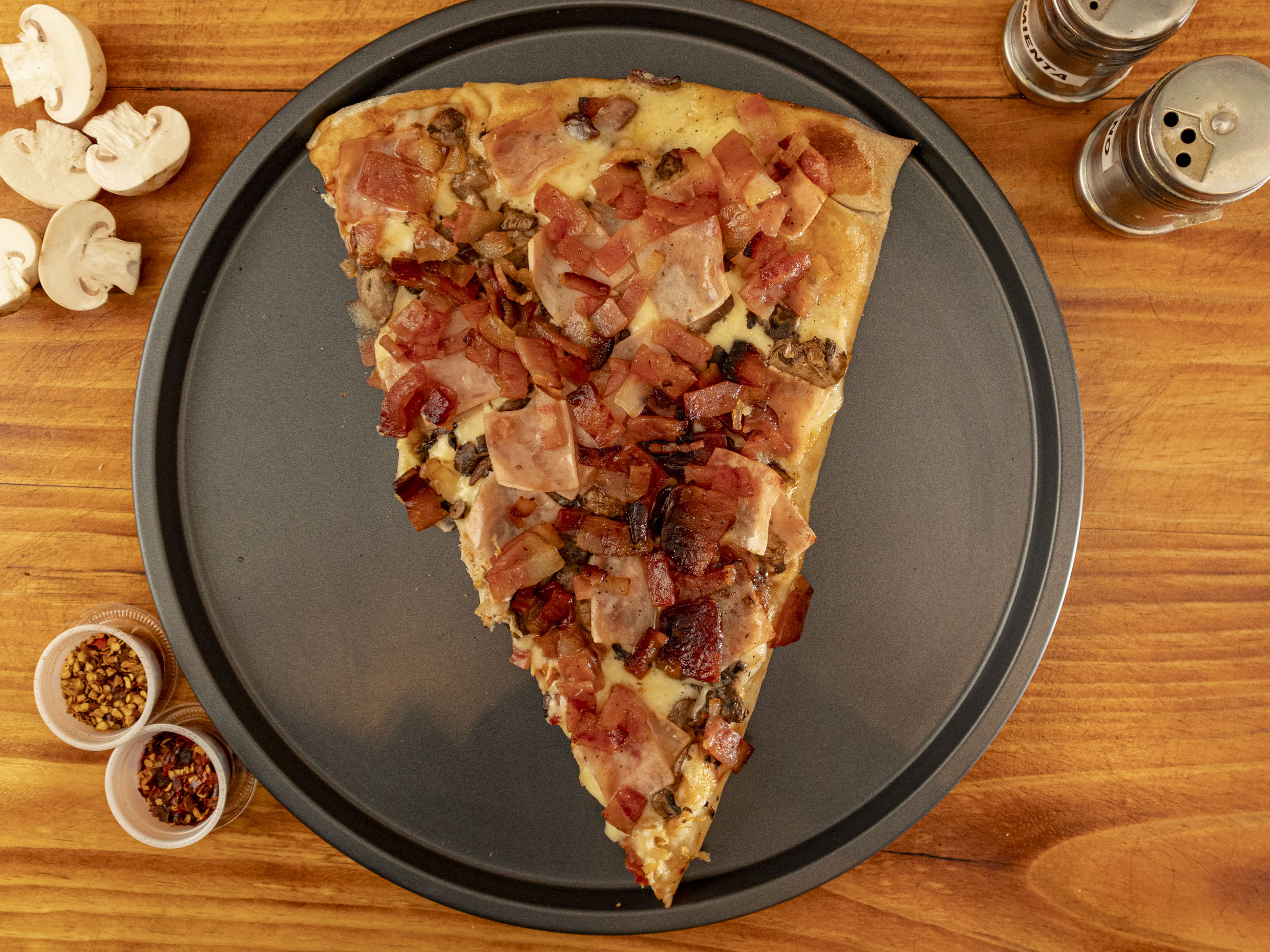 Preparada con jamón, champiñón, tocineta y queso, 1 porción.