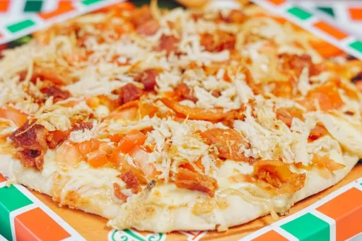 Preparada con pollo, tomate, tocineta y queso, 16 porciones.