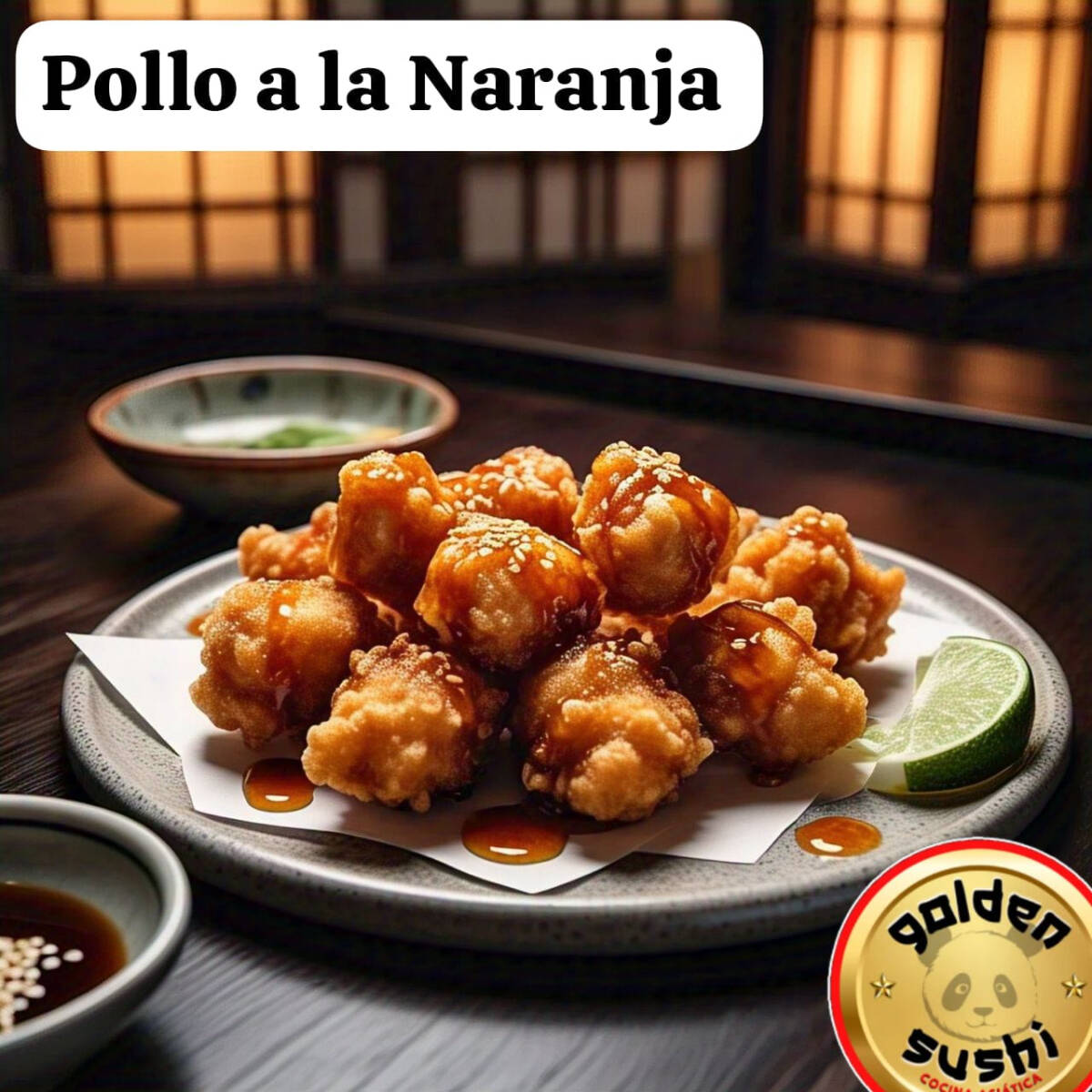 10 trocitos deliciosos de pollo Apanados al estilo japones bañados en salsa agridulce y ajonjolí tostado (foto solo de referencia).