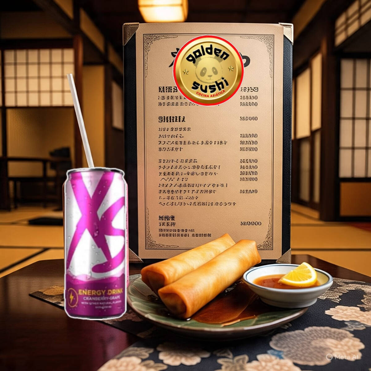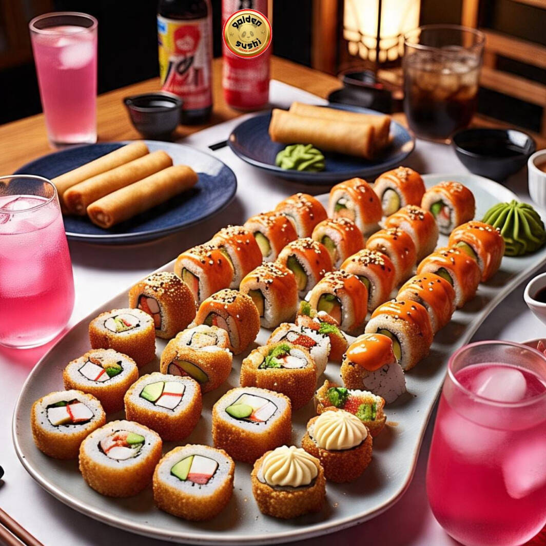 30 bocados de Sushi armados a tu gusto, 3 deliciosas lumpias tradicional, 3 exclusivas Bebidas energéticas sin azúcar (foto solo de referencia).
