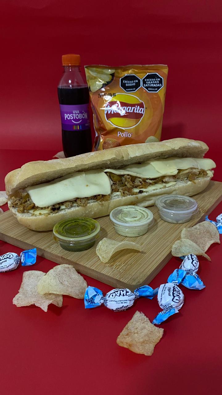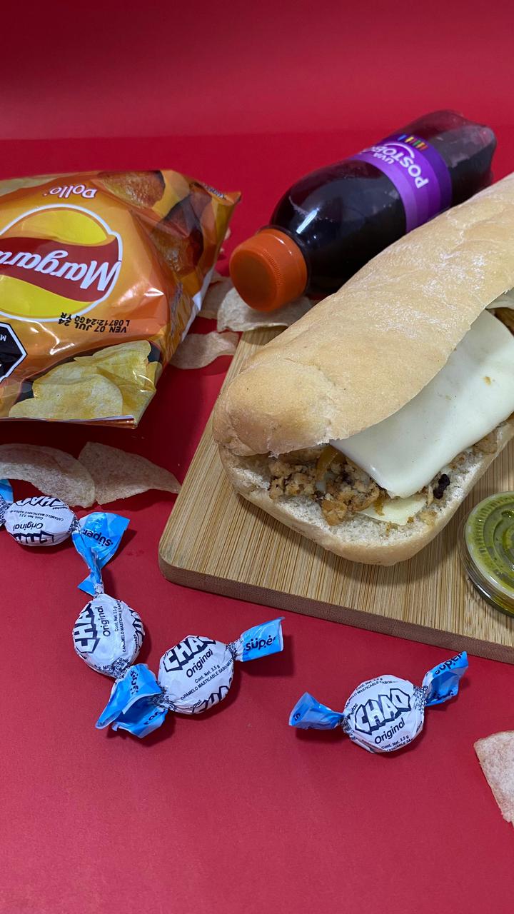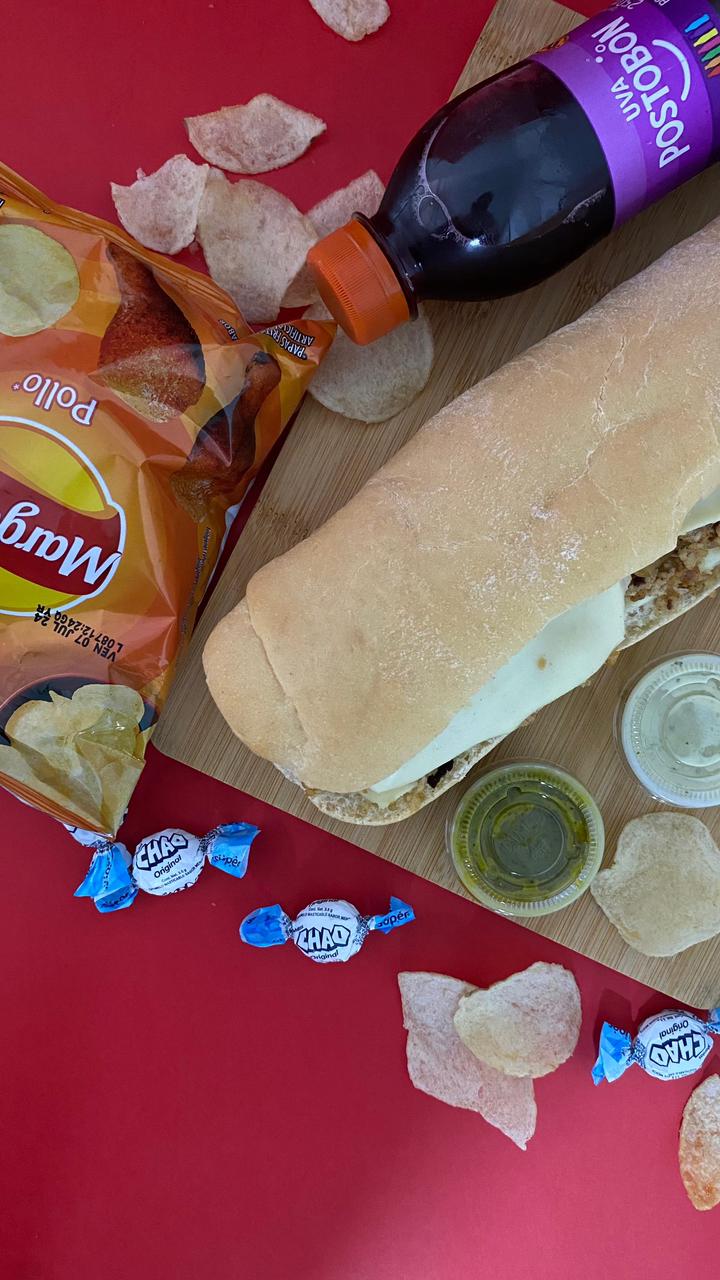 Un sándwich línea premium 23 cm + bebida personal+ papitas margarita+ galleta + abundante salsa + mentichas chao