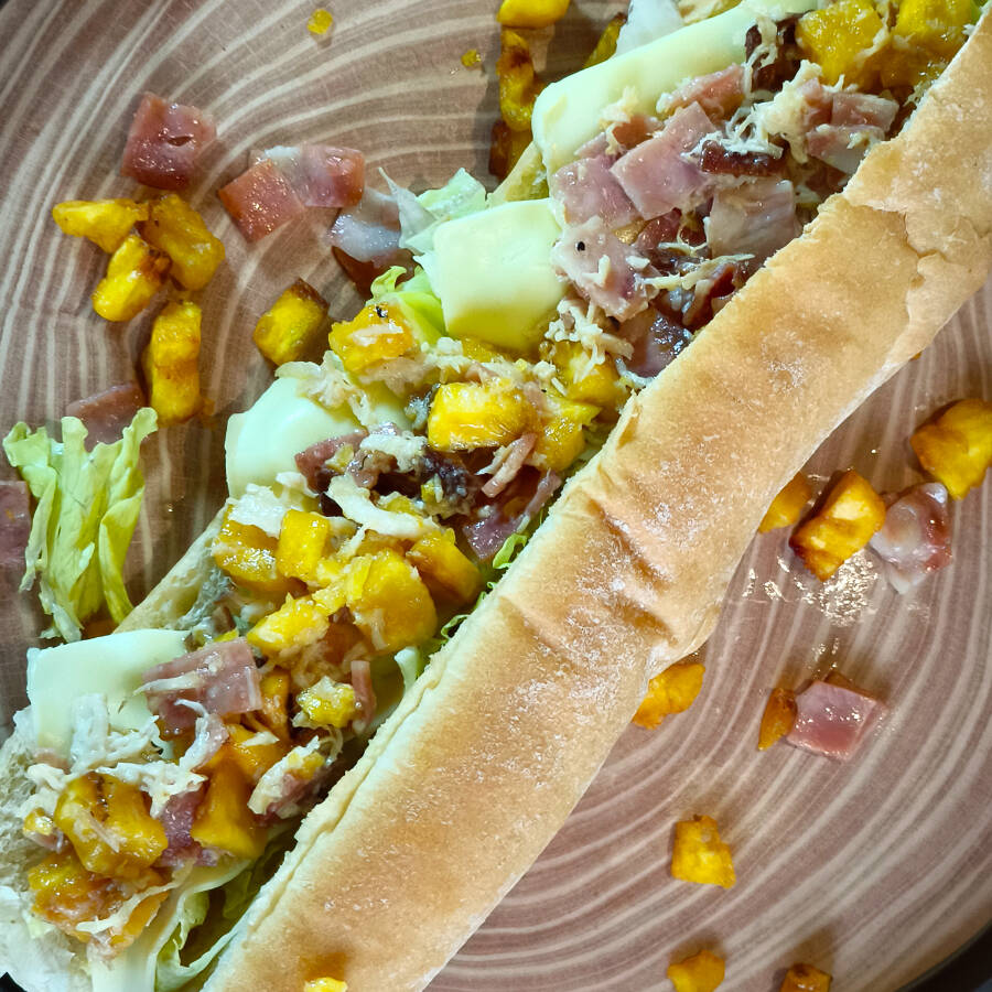 Pechuga de Pollo marca Mac Pollo 🐤 en una deliciosa salsa casera de Maduro 🍌, acompañado de tocineta crunch 🥓, queso mozarella 100% 🫕colombiano que se derretirá en tu boca 🤤, vegetales frescos a tu gusto (lechuga 🥬 y tomate 🍅), sus dos salsas de la casa 🏡 y pan árabe fresco 🥖