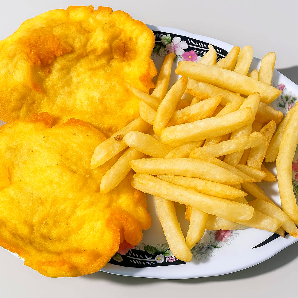 1 PRESA DE.POLLO APANADA +PAPA FRANCESA