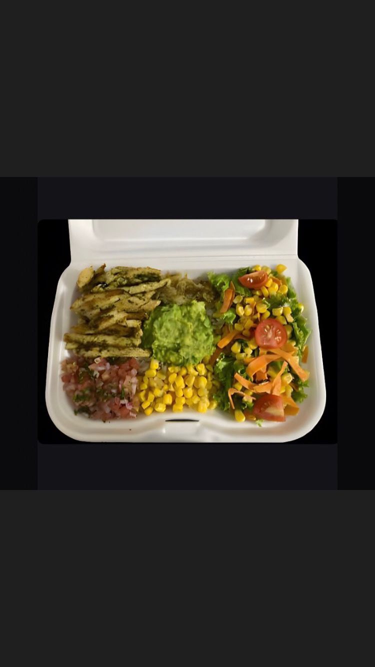 Contiene: Lechuga, tomate cherry, champiñones, zanahoria, mango, pollo asado a la plancha, aguacate y nuestra salsa.