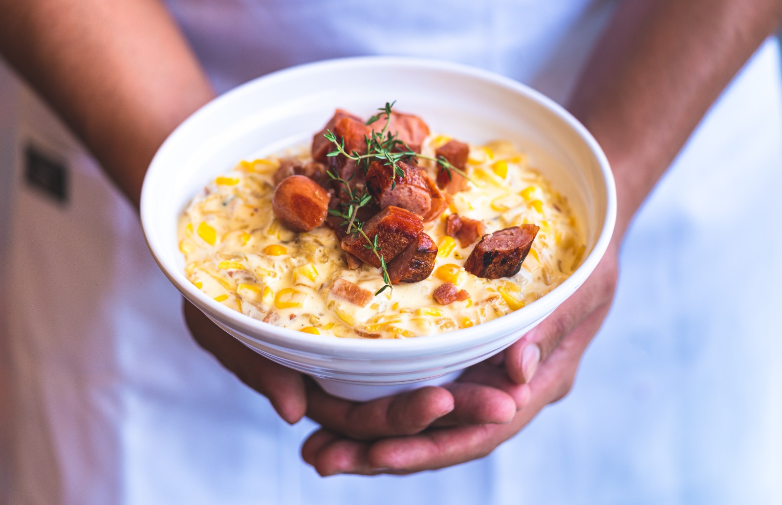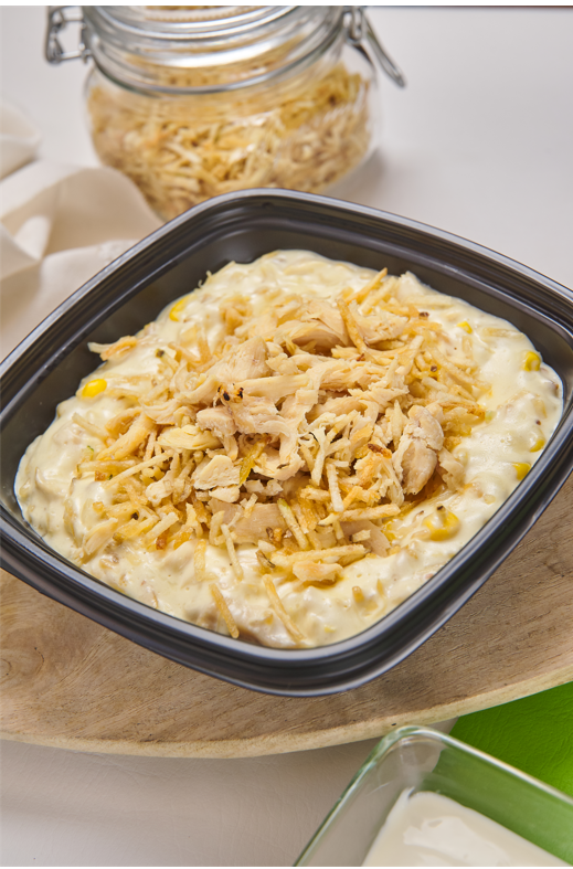 Un mix ganador: maíz fresco, pollo y queso fundido.