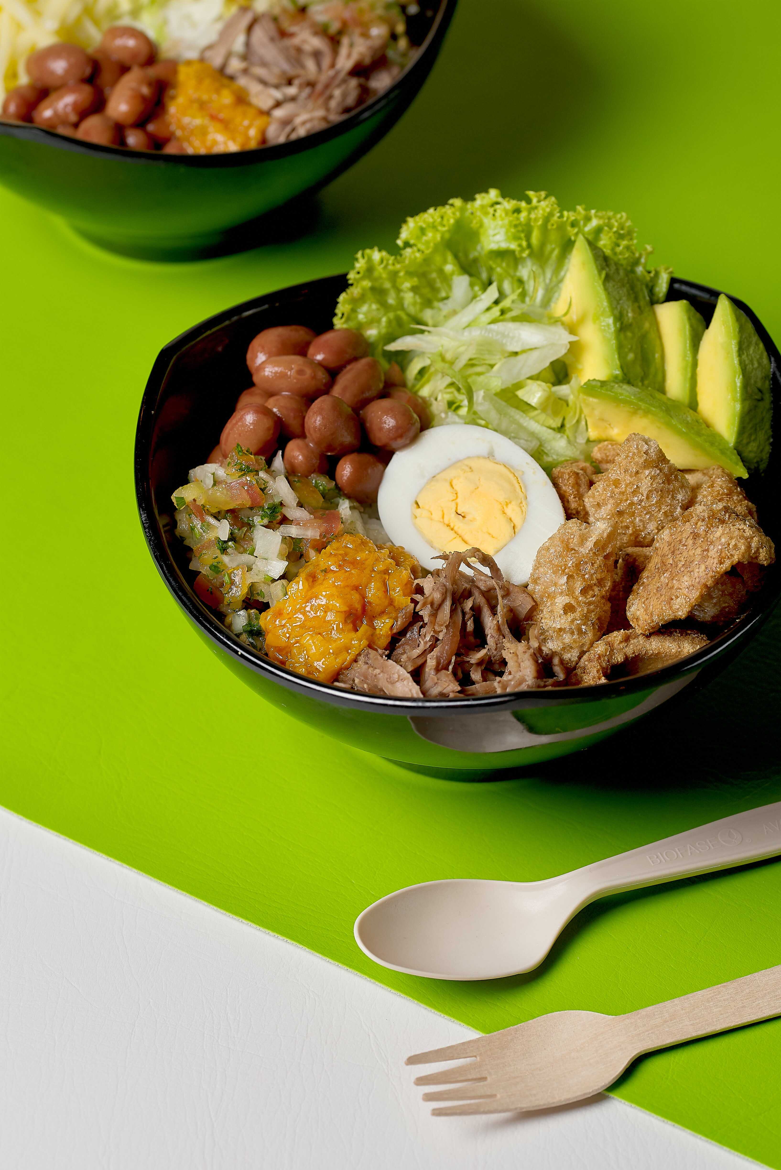 Carne, chicharrón, fríjol, aguacate, huevo y arroz.