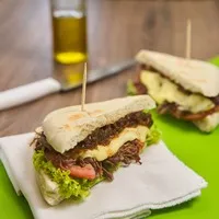 Lechuga, tomate carne, queso y cebolla caramelizada.