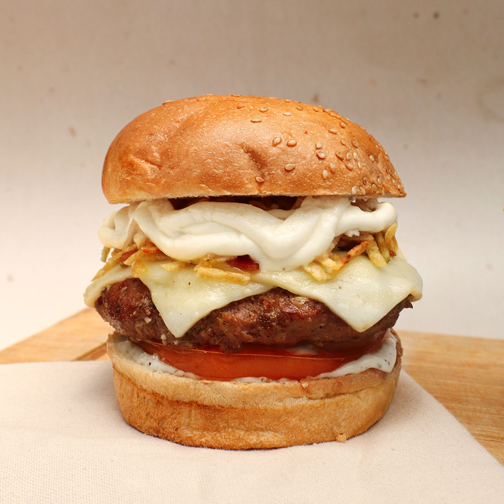 150G de carne certified angus beef acompañado con lechuga, cebolla, tomate, queso cheddar y salsas de la casa bbq y mayonesa