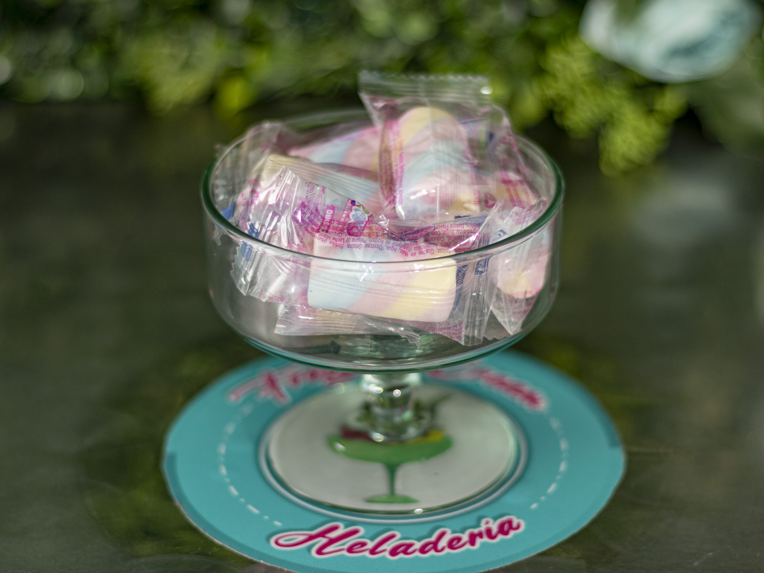 2 Bolas de helado, acompañado de masmelos, crema chantillí y leche condensada.