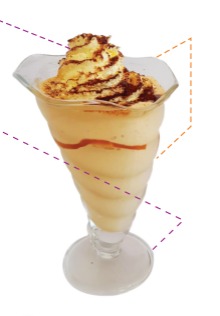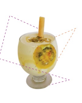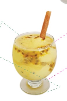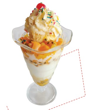 Deliciosa combinación de la exótica maracuyá con la versatilidad de la piña, mango, durazno, 2 sabores de helado, chantilly, lechera y lluvia de colores.