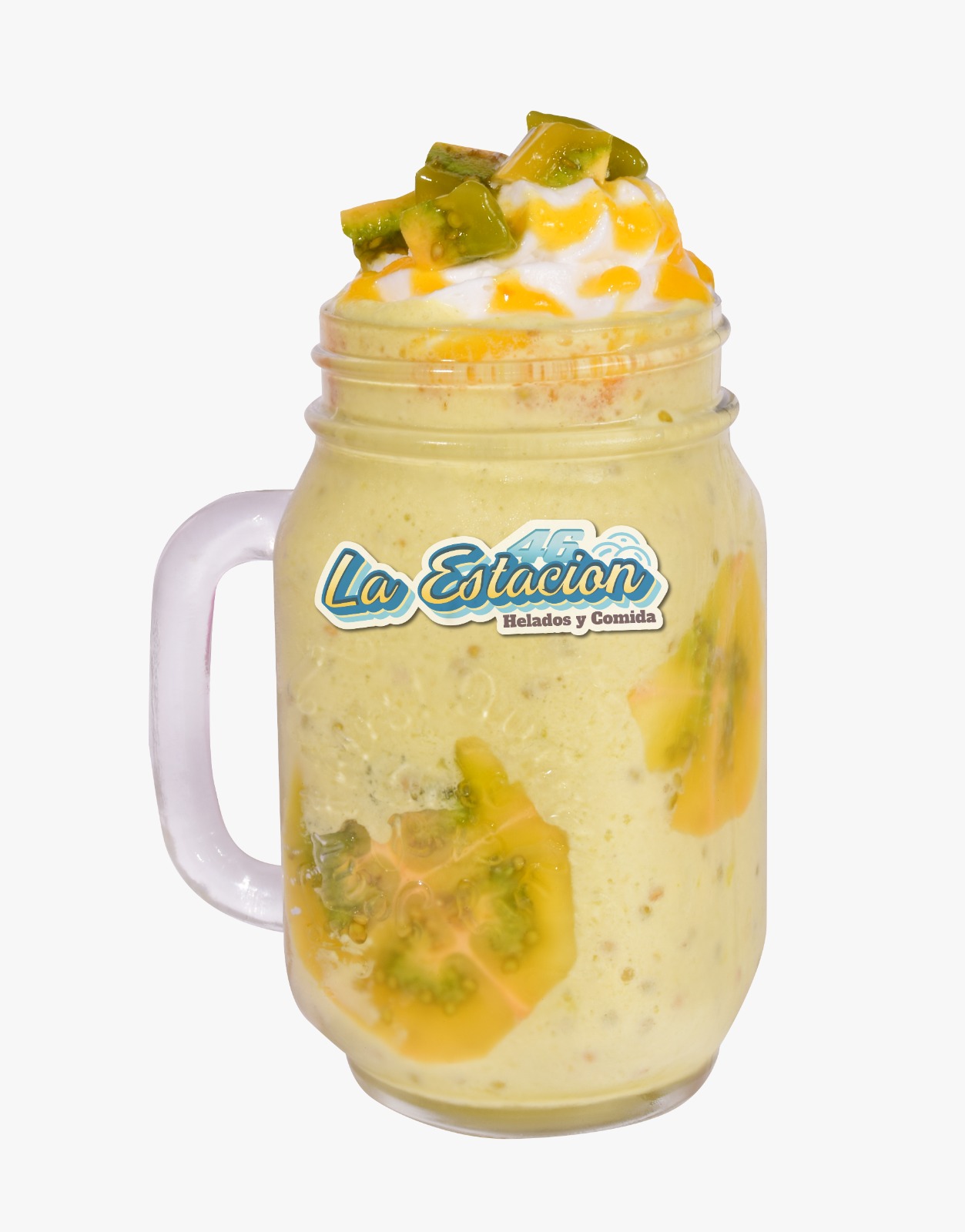 Ingredientes: malteada cítrica tropical, chantilly, lulo y salsa maracumango.