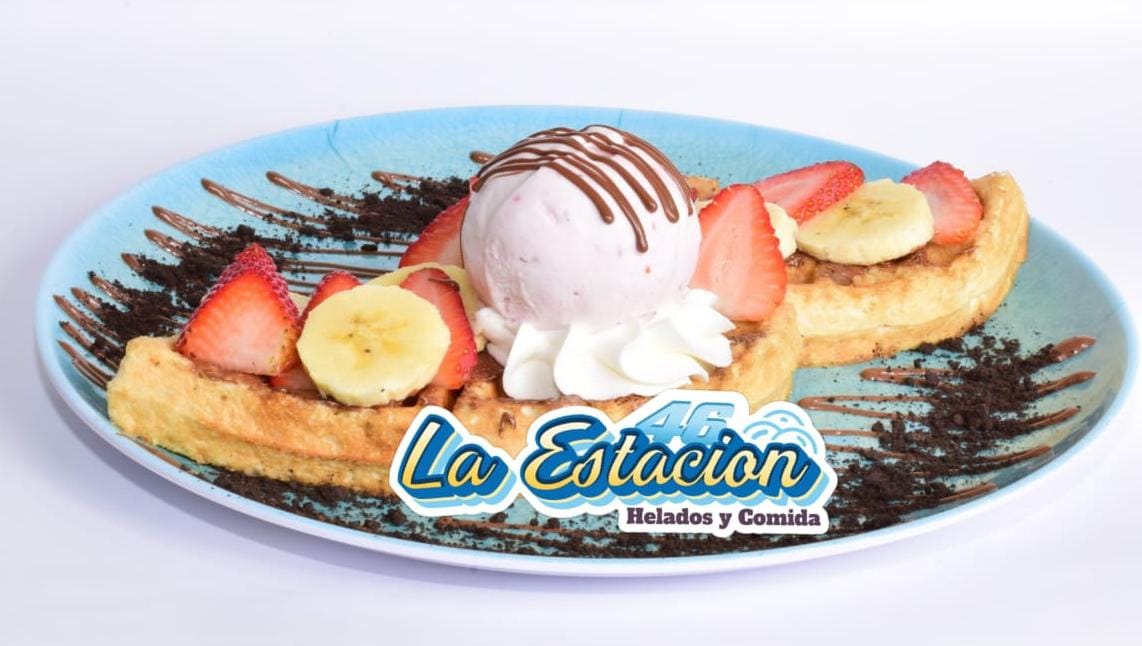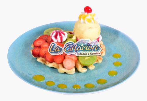 Ingredientes: wafle caliente, fresa, kiwi, salsa natural, chantilly y helado.