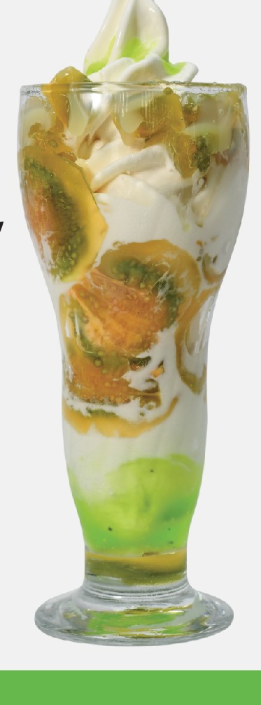 Tropical: helado de yogurt, queso, leche condensada, banano, fresa, mango.