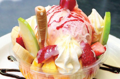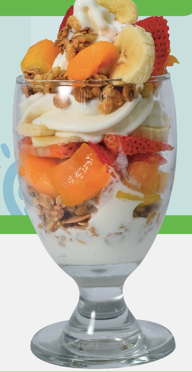 1 Bola de helado, fresa, banano, uva, piña, mango, papaya, sandía, melón, cereal o granola, gelatina, yogurt, salsa de lechera, crema de leche, queso.