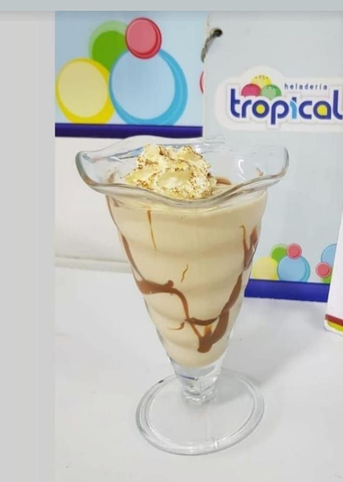 Dos sabores de helado combinado con leche condensada, crema chantilly y suave gelatina.