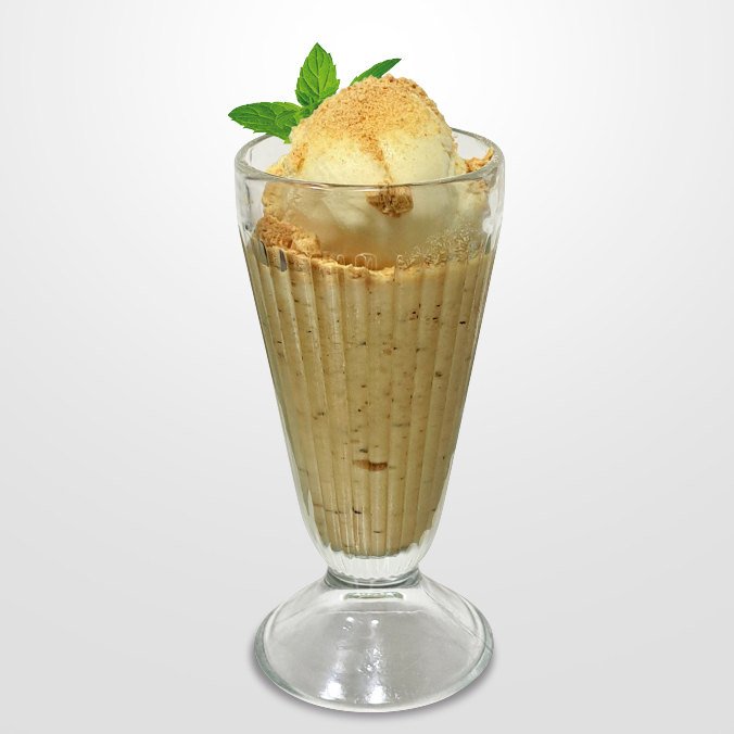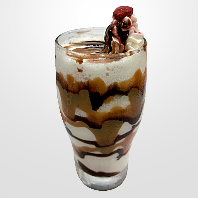 Bebida a Base de Helado adornada con salsas de Arequipe y Chocolate y rica Crema Chantilly