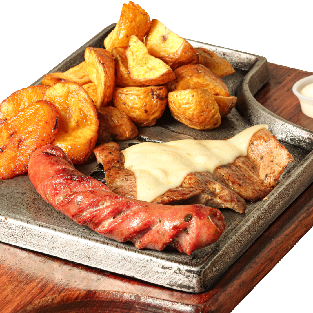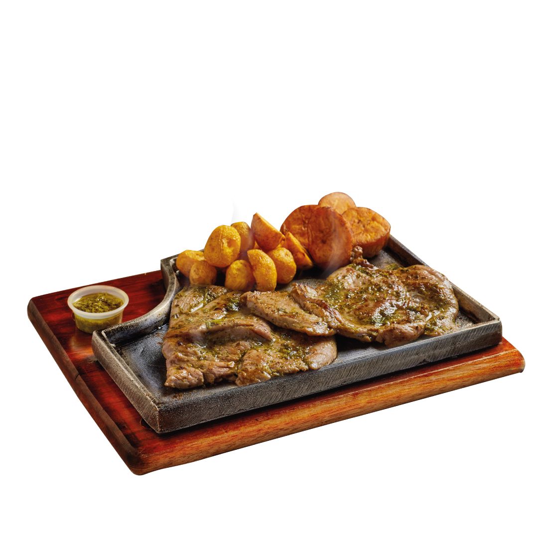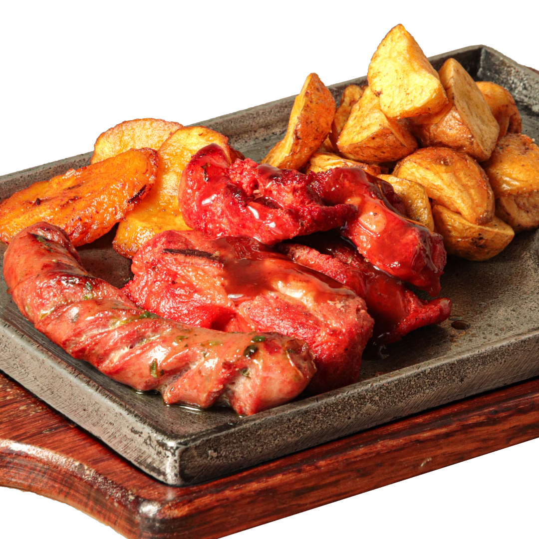 120Gr de Cerdo, acompañados de Chorizo exclusivo Herreros, Papas Criollas Medianas y Salsa Herreros