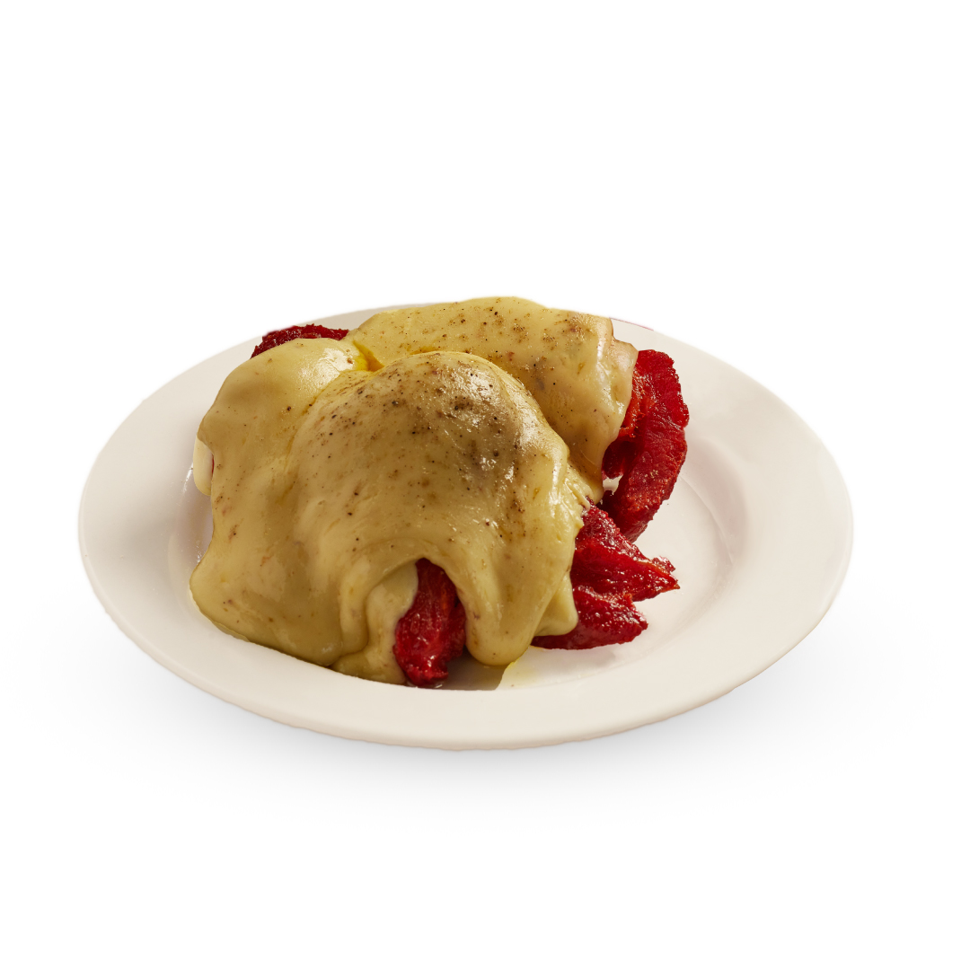 Costilla ahumada, filete de cerdo, tocineta, crema de leche, trocitos de maduro, queso mozzarella.