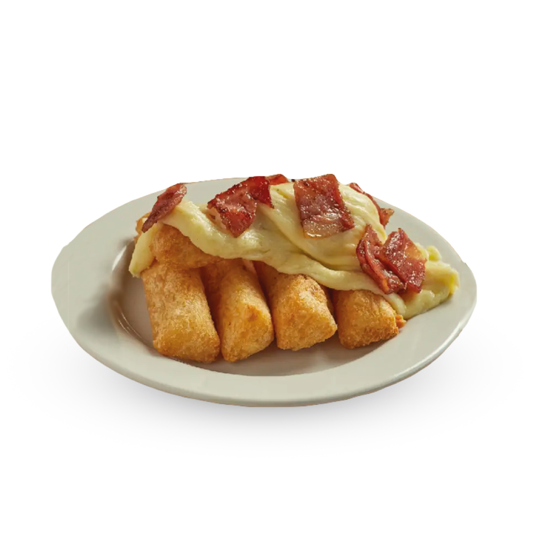 Yuca 5 unidades. Bañadas en queso mozzarella y tocineta. Exclusiva de Herreros.