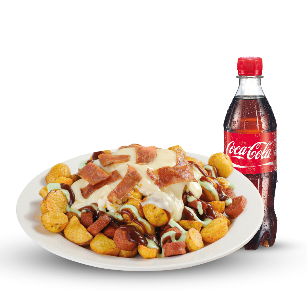 Salchipapa Personal al estilo Herreros, acompañada de una deliciosa Coca Cola 250ml