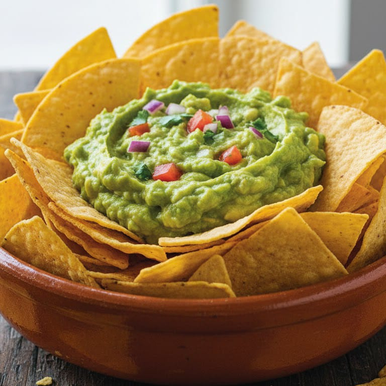 Totopos, pico de gallo, guacamole o salsa cheddar.