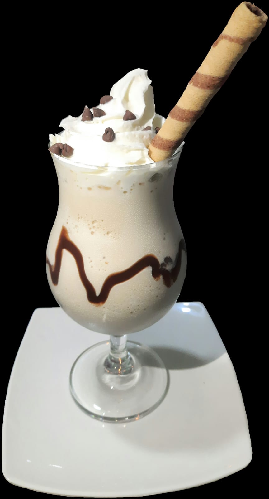 Batido a base de helado de tu preferencia con crema chantilly, chips, barquillo y garnitura.