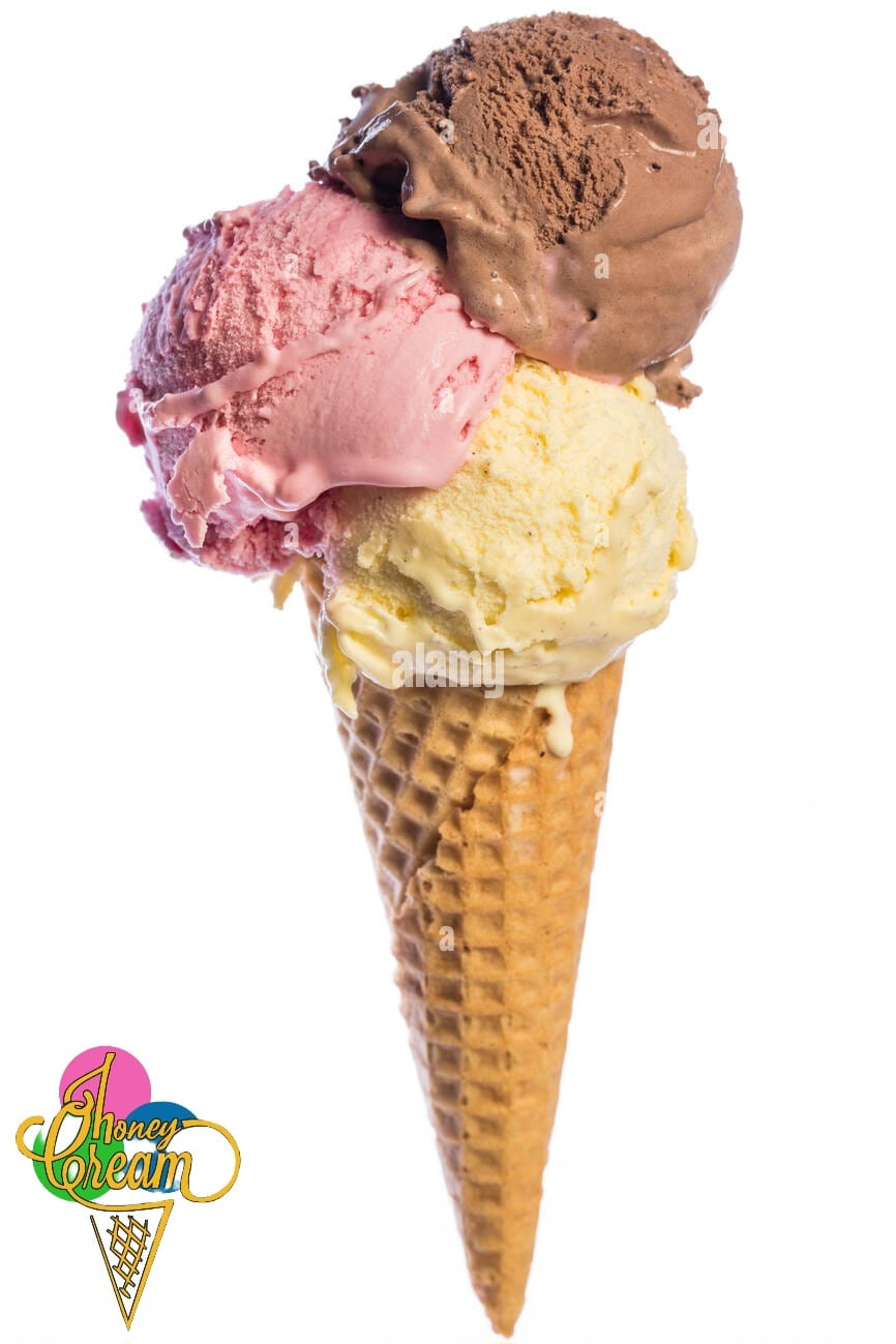 Delicioso helado en galleta en forma de cono. Tres sabores a elección.