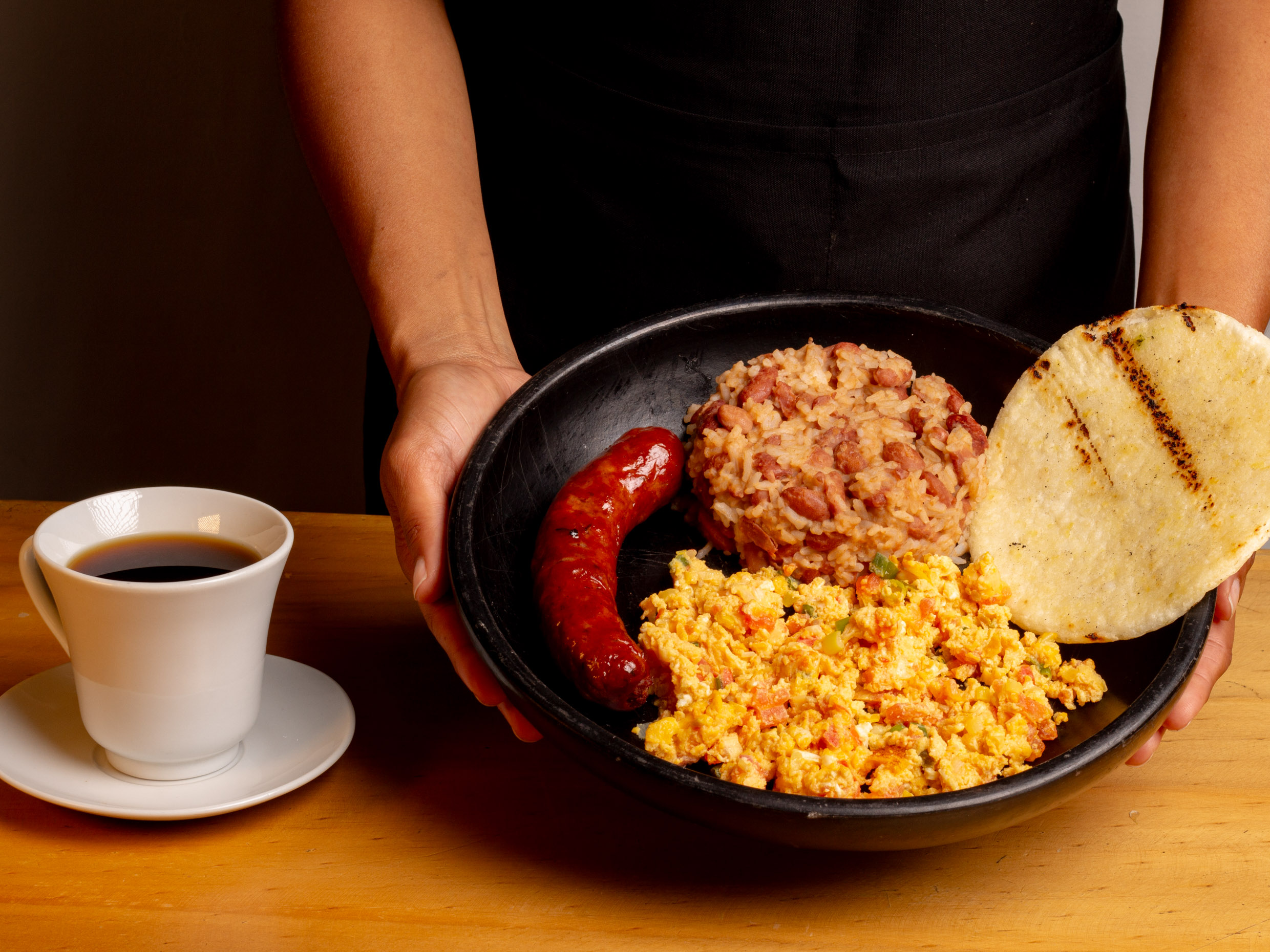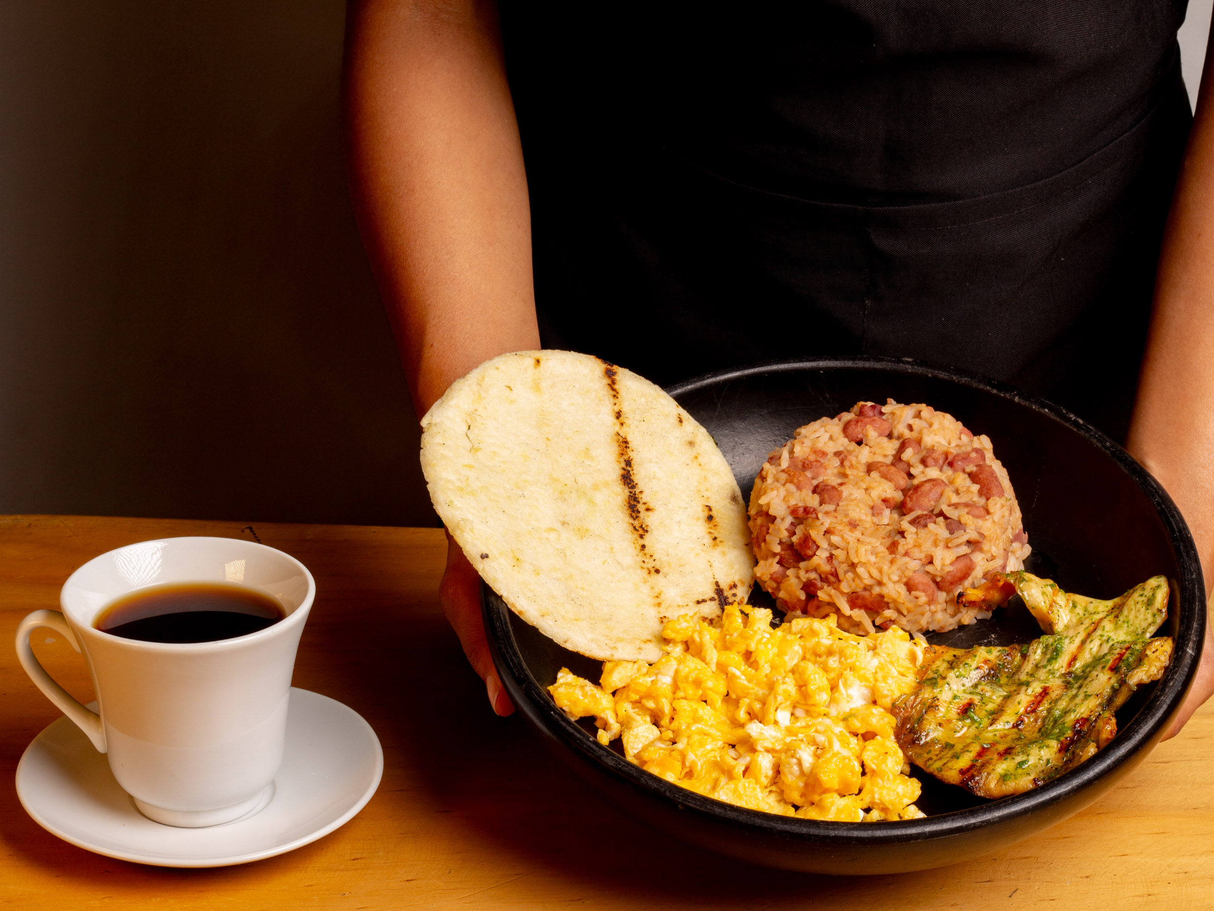 Acompañado de arepa, calentado de frijoles y bebida