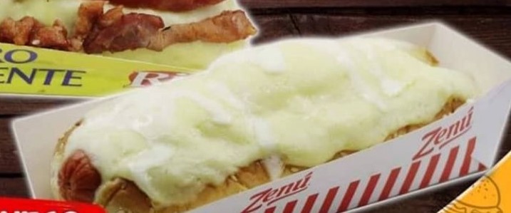 Pan, salchicha americana, piña calada, doble queso, tocineta, cebolla, papitas, salsa megaqueso, salsas (tomate, rosada, ajo, piña).