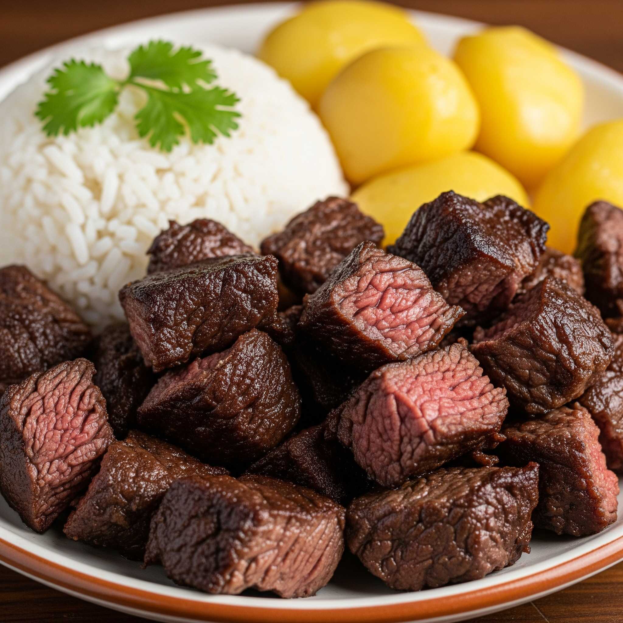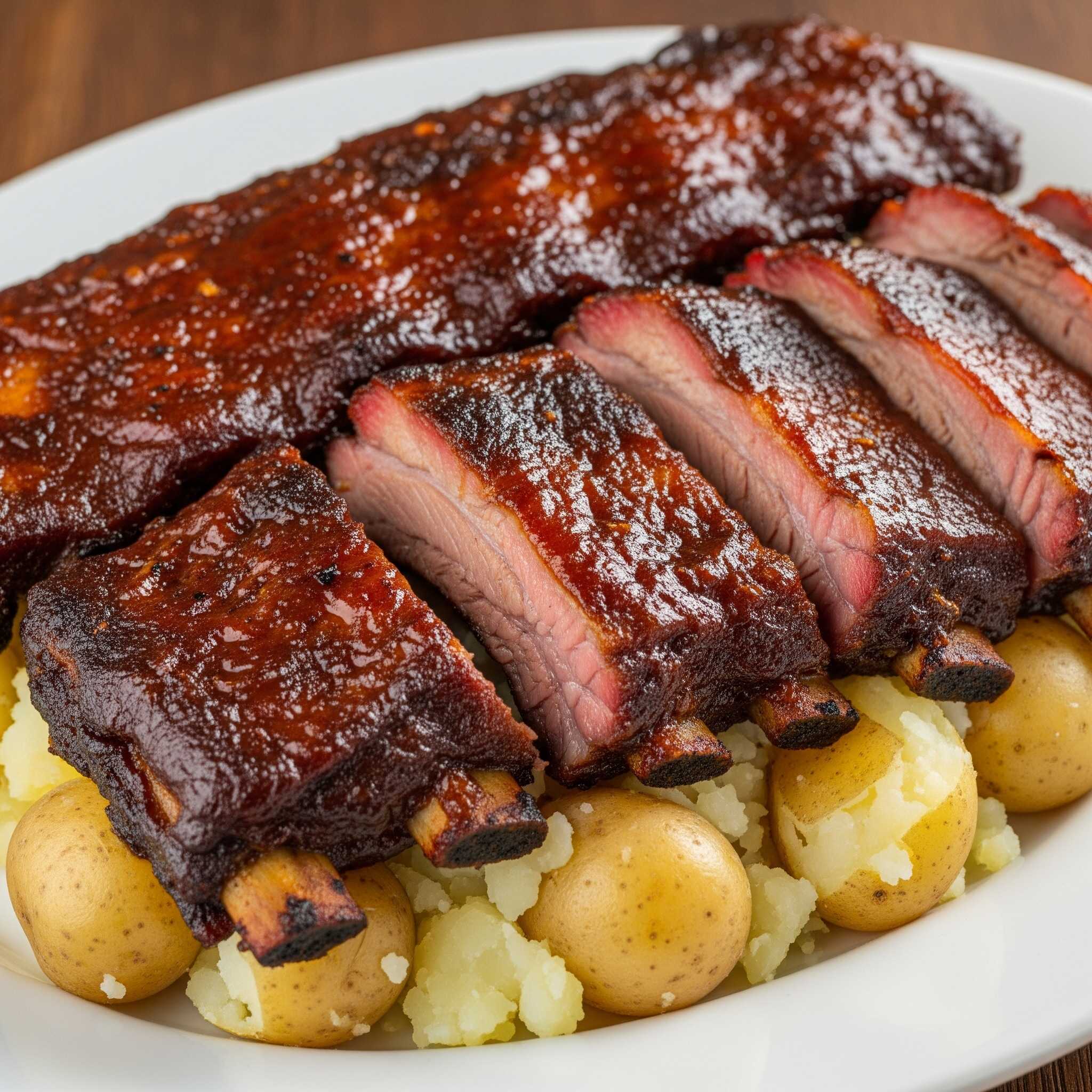 Costilla al barril, con 400gr de proteína, acompañado de papa al vapor, maduro y salsa de la casa