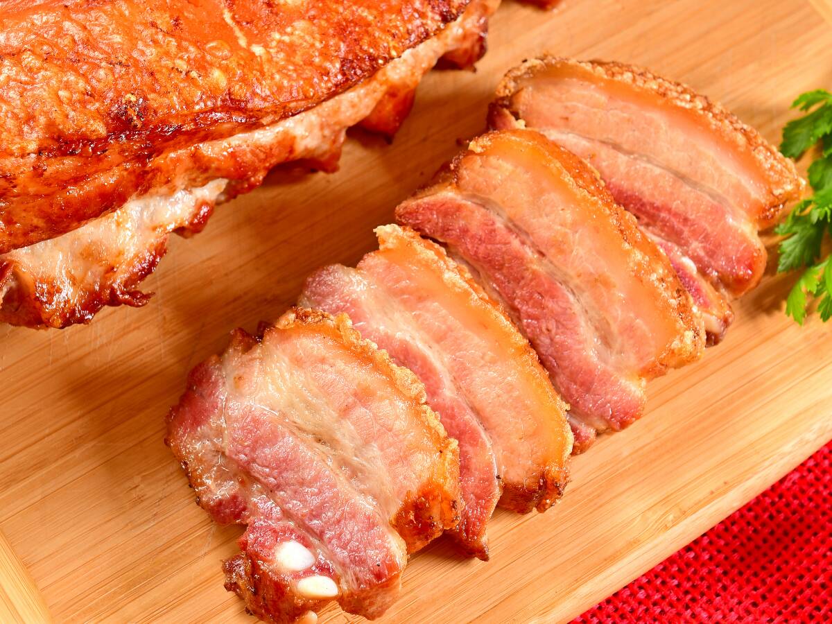 Bondiola al barril 380gr, acompañado de papa al vapor, maduro y salsa de la casa