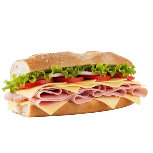 Jamón de pavo, queso, tomate, lechuga y salsa de la casa