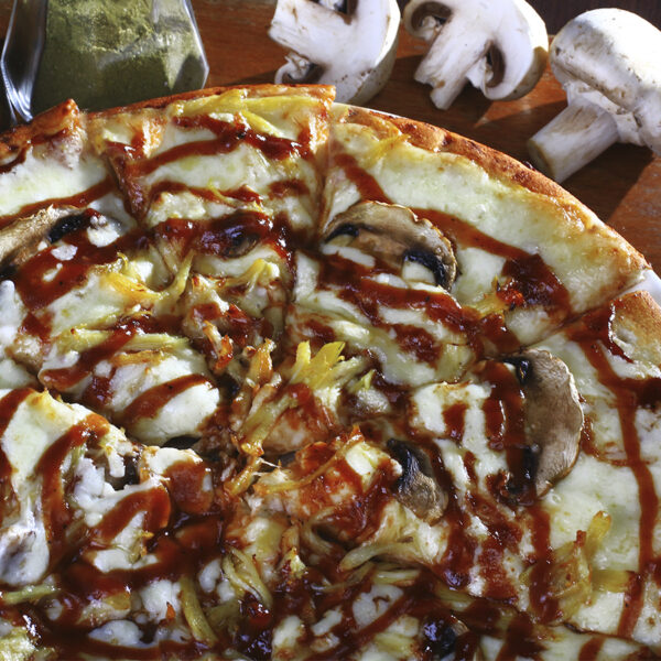Ingredientes: costilla de cerdo ahumada, salsa BBQ, maicitos, cebolla, champiñones.