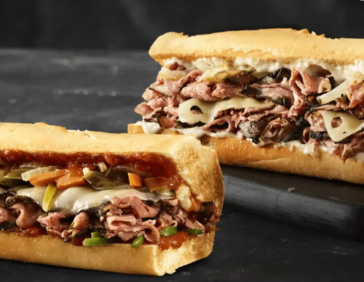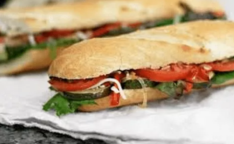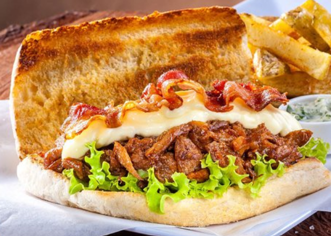 Pan, carne desmechada, vegetales, salsa de la casa.