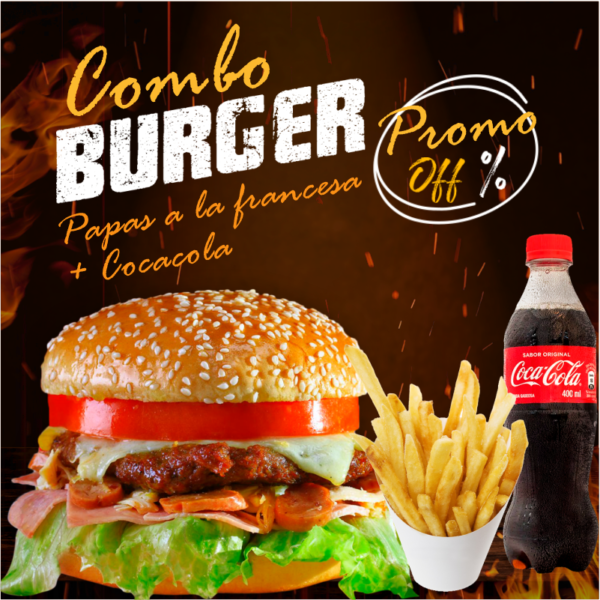 Hamburguesa Especial*1 + Gaseosa Coca-Cola Sabor Original 400 ml.*1 + Porción de Papas a la Francesa*1