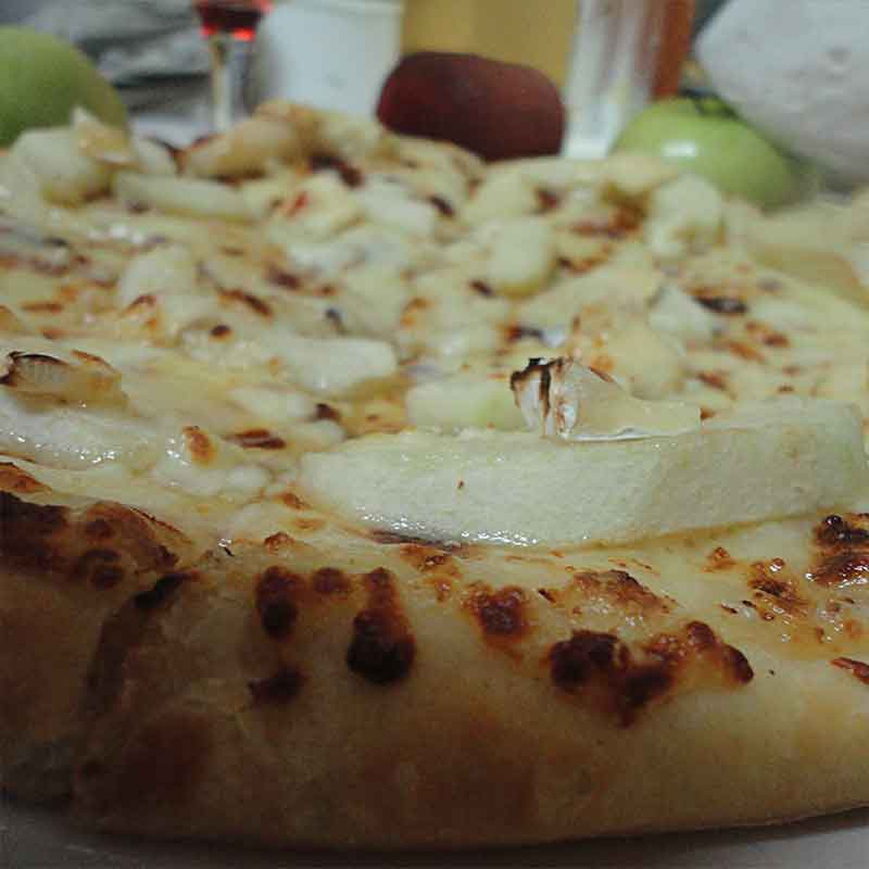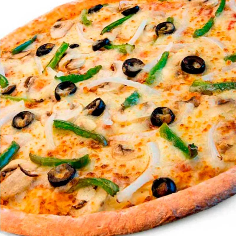 Maduro, maíz tierno, pimentón, champiñón, tomate, lechuga, queso mozzarella, salsa ajo.