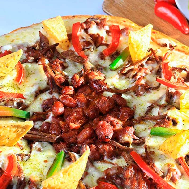 Carne Desmechada, Frijoles Chiles, Cebolla, Pimentón, Queso, Guacamole Picante