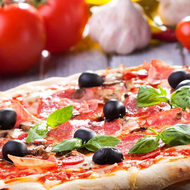 Kabanos, Tomate, Champiñones, Cebolla, Pimentón, Jamón, Tocineta