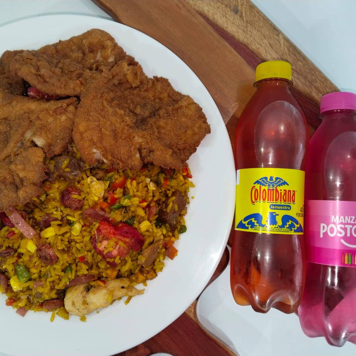 Arroz paisa 400g (2-PERS) + 2 chuletas + 2 Gaseosas 250Ml