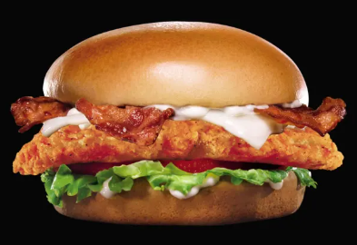 Pollo crispy, tocineta ahumada, tomate, lechuga, queso, pan brioche, cebolla grille, salsa de la casa con papas criollas.