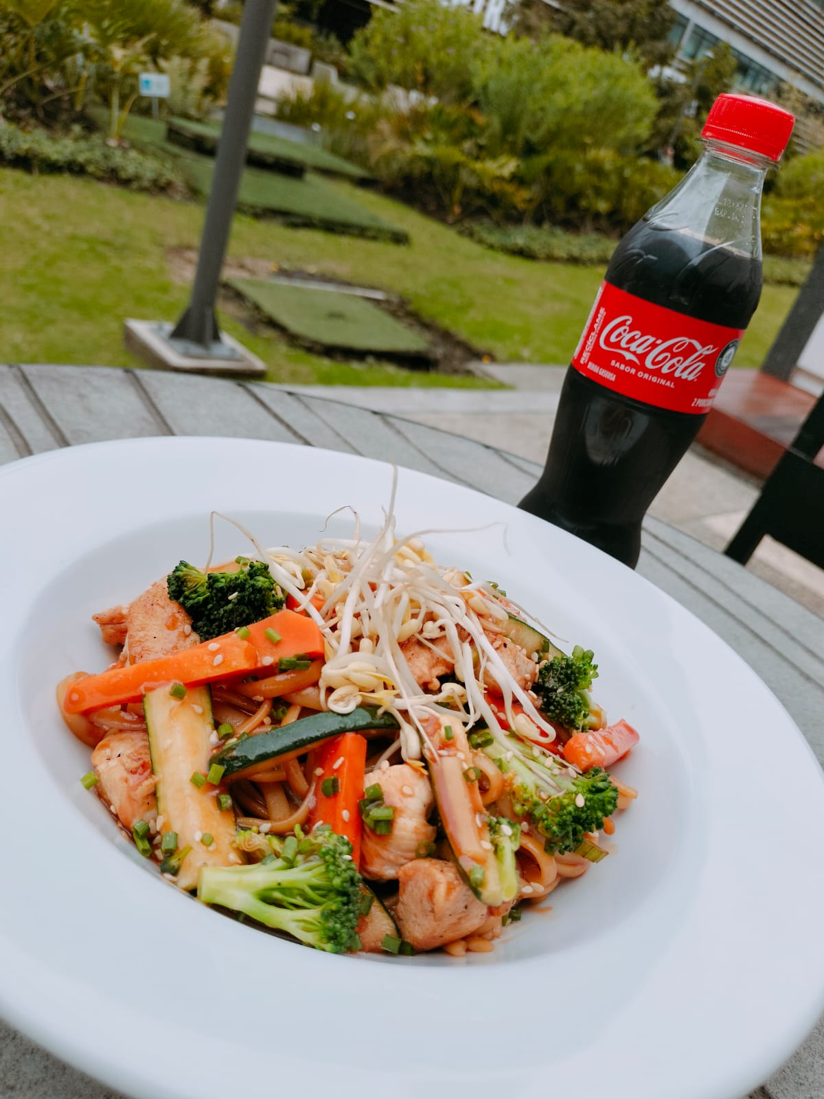 Arroz saltado al wok con pollo , vegetales y salsas legendarias chinas . El equilibrio perfecto del Yin y el Yan . Acompañado de Coca cola 400 ml.