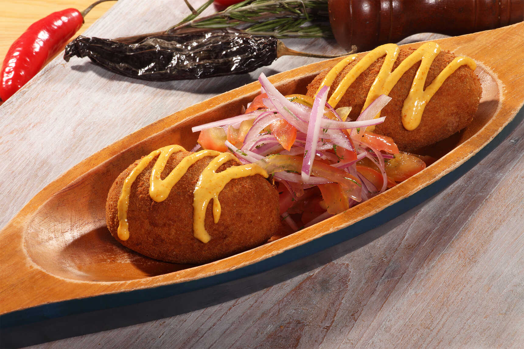La entrada favorita de nuestro chef. Carne salteada, con cebollita caramelizada y toques de ají panca.