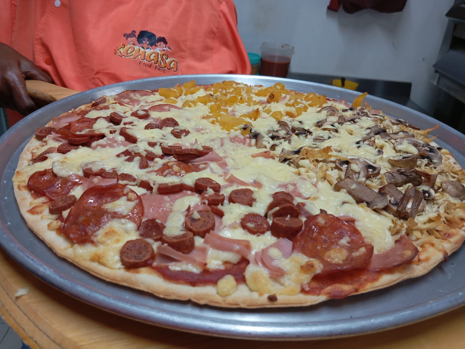 Base De Salsa Napolitana Queso Mozarella Piña calada y jamón.Porción personal Elige Tu Tamaño Ideal