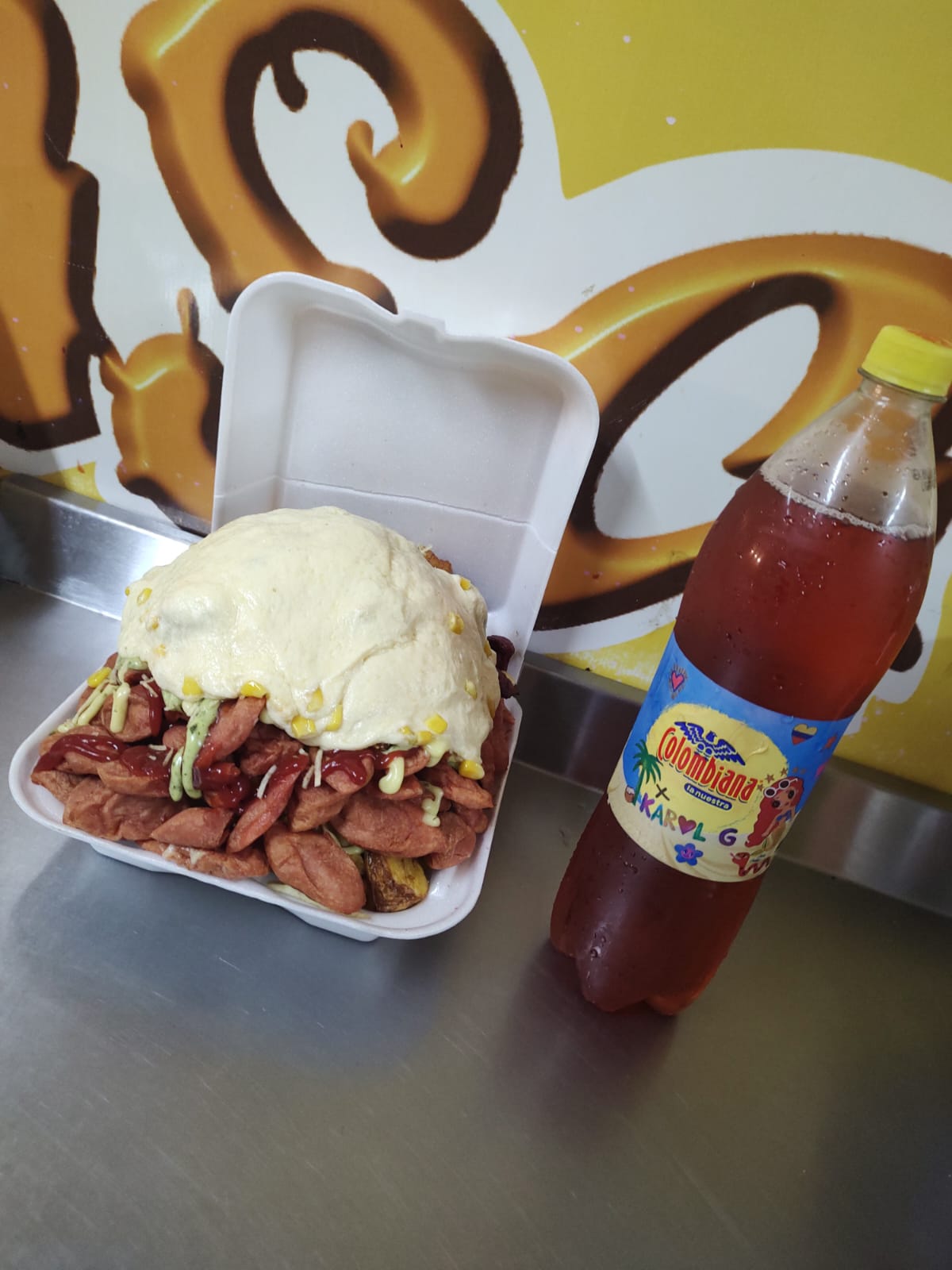 Gaseosa Personal 400 Ml*1 + Salchipapa Desgranada 2-3 Personas: Maduritos, queso y maíz.*1