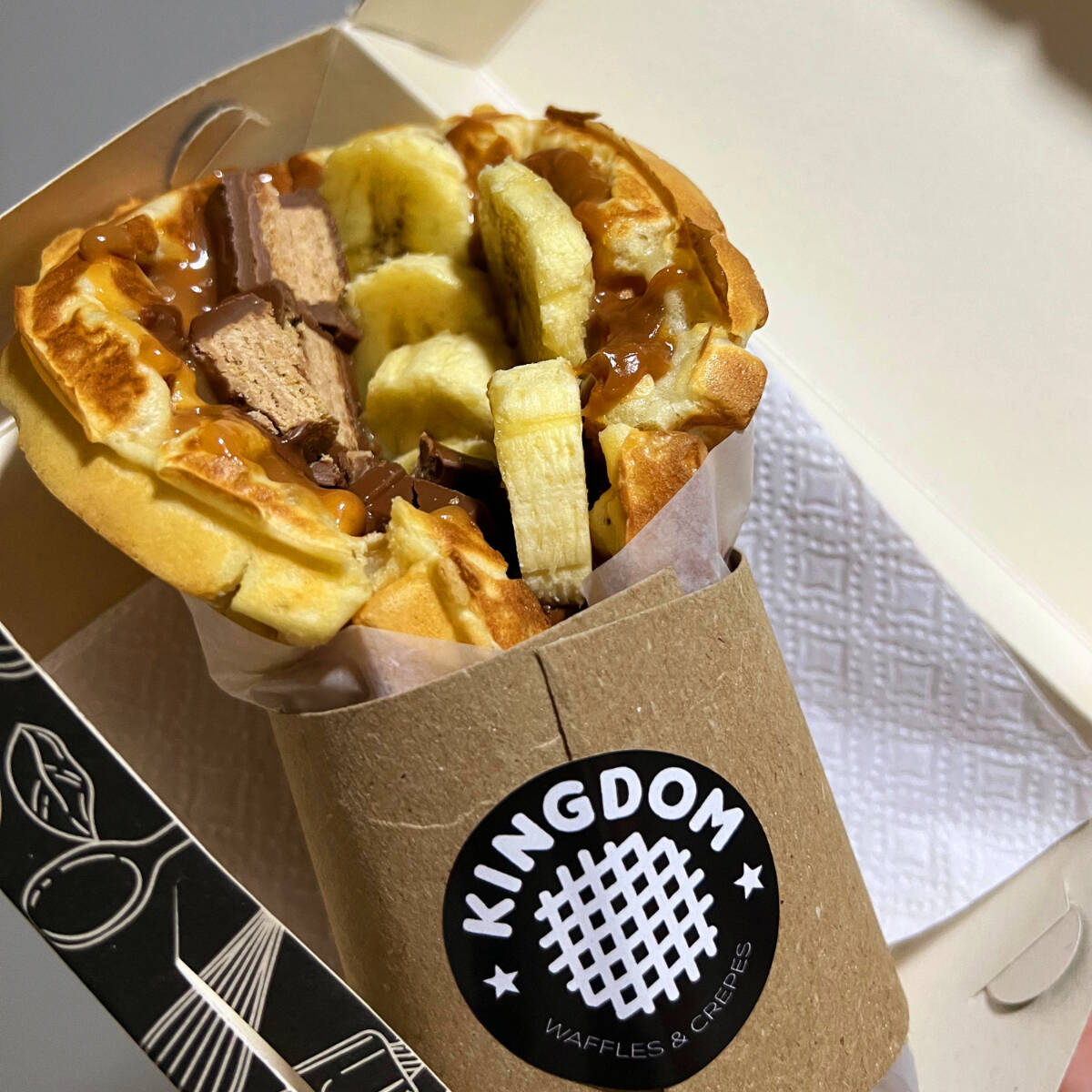 Waffle con Fresa, Nutella, Banano, Arequipe.