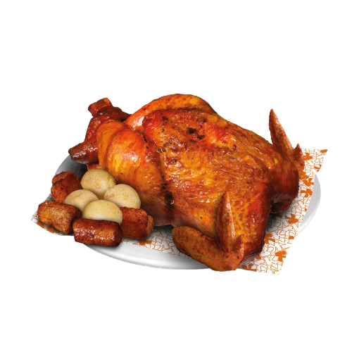 1 Pollo asado acompañado de 4 papas y 4 maduros.