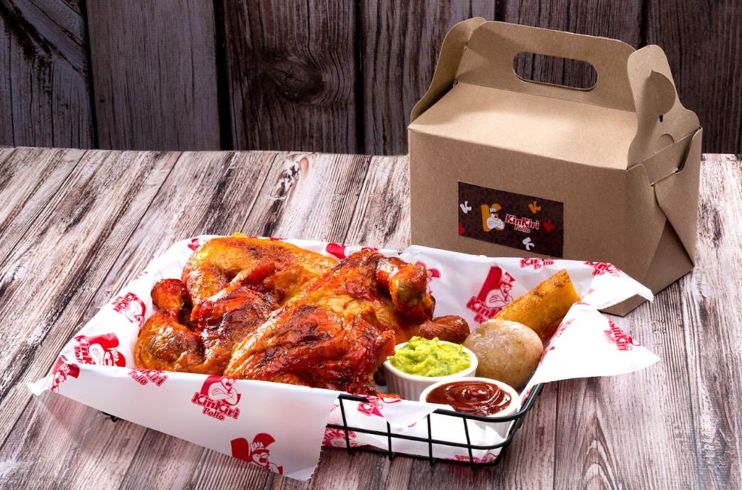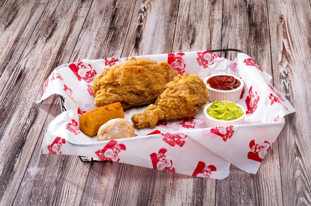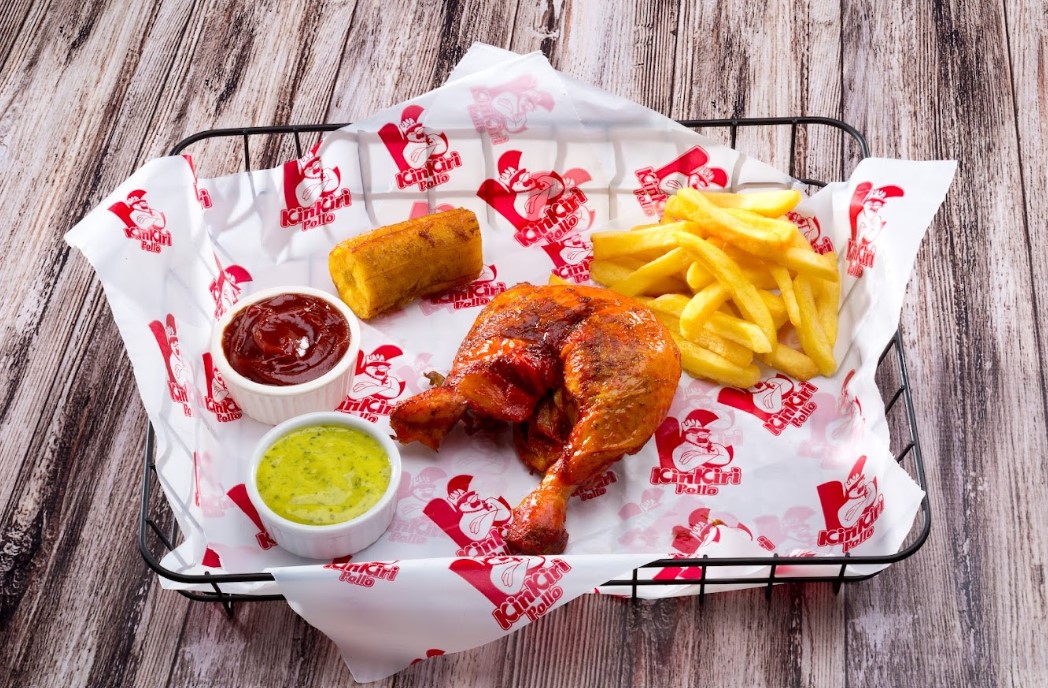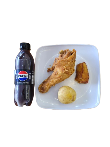 1 Pollo, asado o apanado, con maduro y papa salada, acompañado de 2 porciones de papas a la francesa y Postobón familiar (Sabor sujeto a disponibilidad de la tienda)